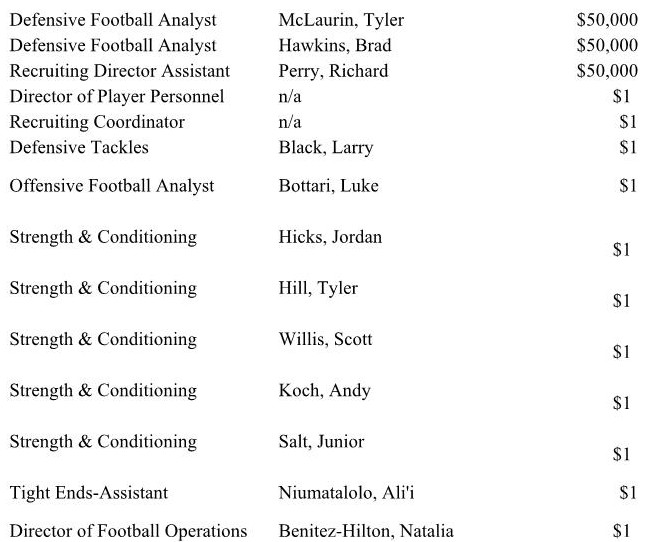 | Football | Harbaugh, Jim | $500,000 | Men's | 1 | $7 million |