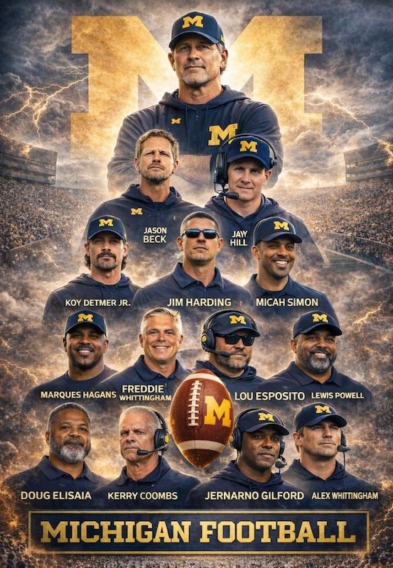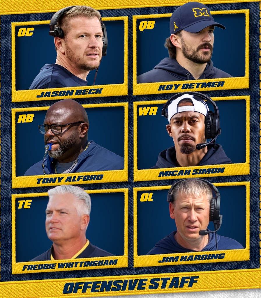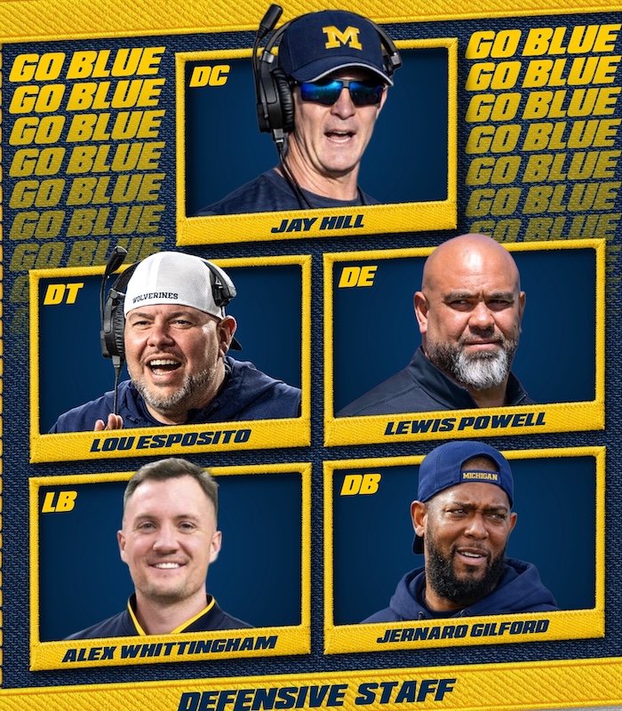 Jackson, Greg Jean-Mary, Brian x 2 Kovacs, Jordan Lindsey, Chip Linguist, Maurice McDaniels, Ben McElwain, Jim Martindale, Wink Mattison, Greg Minter, Jesse Minter, Rick Morgan, LaMar Moore, Sherrone Morgan, Courtney Netter, Al Newsome, Grant Nua, Shaun Partridge, Chris Petenga, Cooper Poggi, Biff Prince, Ron |