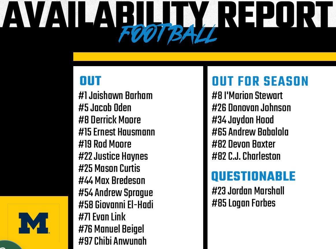 Offense gained 373 net yards with 174 on the ground; they were 9 of 24 in 3rd and 4th down conversions with 19 first downs. Bryce Underwood hit 23 of 42 for 199 yards, 2 TDs and 3 interceptions; he ran 14 times for 69 yards and a TD after 25 yards were deducted from sacks. Bryson Kuzdzal ran 20 times for 82 yards. Andrew Marsh caught 3 passes for 10 yards and a TD. Kendrick Bell caught two passes for 24 yards including a 12 yard TD. Donoven McCulley caught 4 passes for 54 yards. Marlin Klein caught 4 passes for 39 yards. Semaj Morgan caught a 9 yard pass, and ran twice for -5 yards; he also missed on another halfback pass, his second of the season. The Longhorns recorded 3 sacks against the Wolverines, and hurried Underwood all day long until he unravelled with three 4th quarter interceptions after Michigan led 27-24 with 10:56 to go in the 4th quarter. Michigan held over 6 minutes time of possession advantage, and it gave them 14 more offensive plays. Ty'Anthony Smith led the Texas defense with 9 tackles plus 2 interceptions.